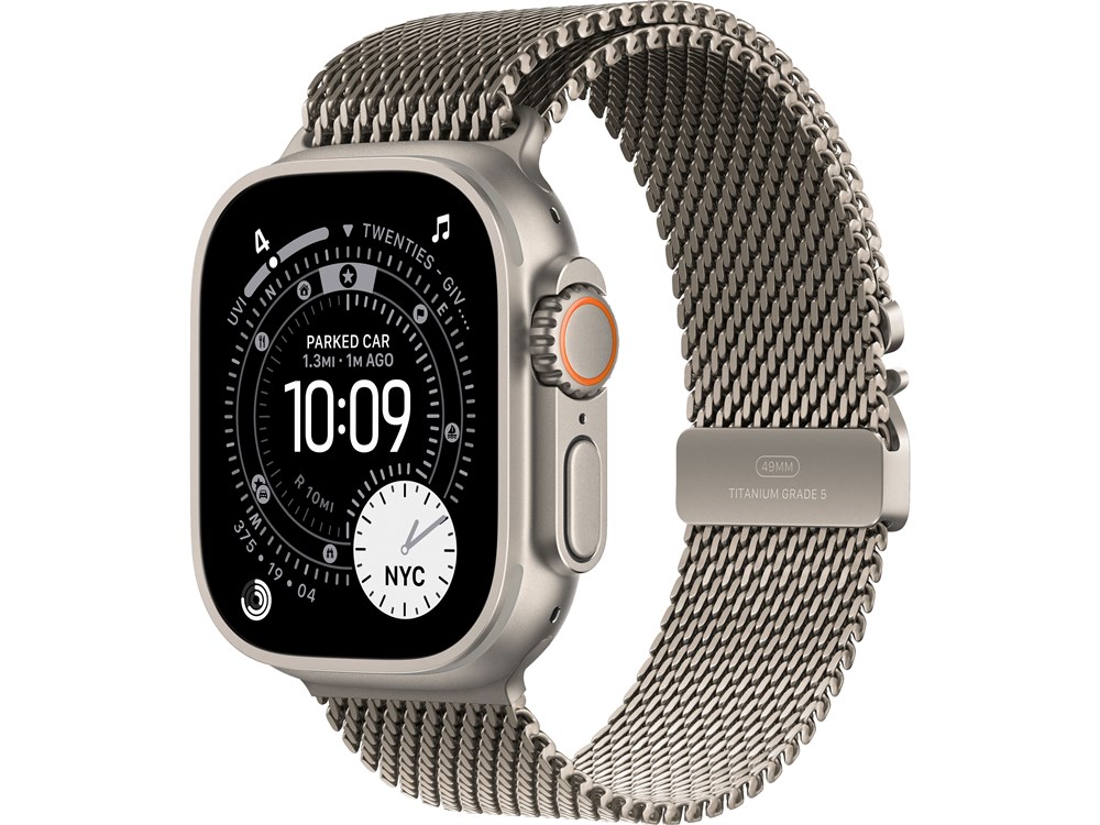 Apple Watch Ultra 3, 49 мм натуральный титановый корпус с Natural Titanium Milanese браслет - S (130-160 мм)